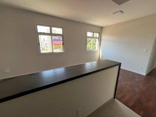 Apartamento impecável de 90m² no bairro Coração de Jesus, recém-reformado com muito bom gosto. Conta com sala ampla para dois ambientes, piso em taco sintecado, cozinha americana com armários planejados e área de serviço espaçosa. São três quartos, sendo uma suíte com closet. Banheiros com acabamento em porcelanato e box em blindex. Possui uma vaga de garagem. Prédio sem elevador, com apenas um lance de escada.